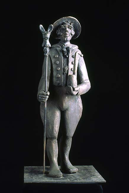 Beide Bauern tragen als Stecken den „Hochzeiter“, einen leichten und vornehmen Feiertagsstecken. Wir haben diese Stecken zusätzlich mit den Köpfen von Fuchs und Hase ausgestattet, weil die Bauern sich oft genug nicht „grün“ waren.